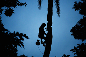 ভারতীয় গাছি রস সংগ্রহের জন্য তাল গাছে উঠছেন