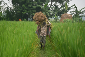 ভারত: কৃষকরা মাঠে ধান কাটছে