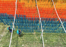 মাঠের উপরে রঙিন কাপড়