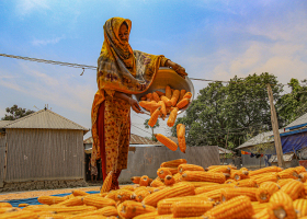 ভুট্টা শুকাচ্ছেন বাংলাদেশি কৃষক