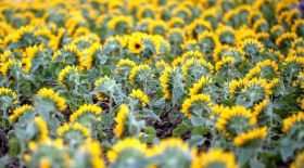 চীনের হ্য পেই প্রদেশের হান তান শহরের জলাভূমি পার্কে সূর্যমুখী ফুলে ফুটেছে।