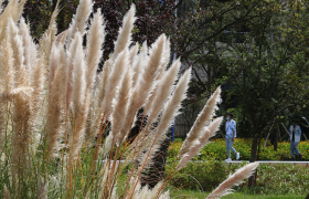 চীনের খুন মিং-এর জলাভূমি পার্কের রিড ফুল ফুটেছে