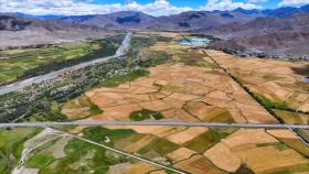 তিব্বতের মোঝুগংকা জেলা: উচ্চভূমিতে বার্লি সংগ্রহ